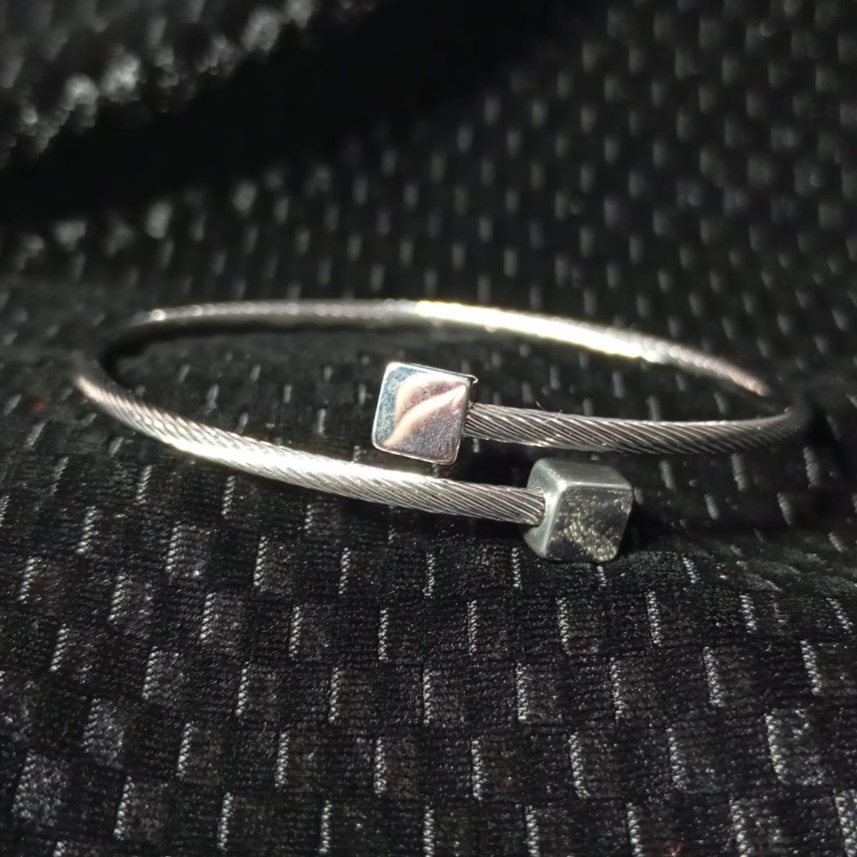 A peça é feita em aço inox , sendo flexível , se adapta a qualquer tamanho de braço !